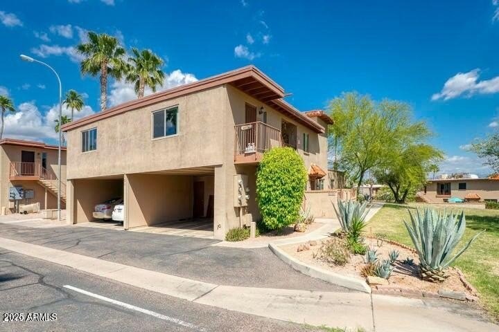 This 2nd floor unit boasts privacy and great views of Red Rock, the famous Fountain and McDowell Mountains!!! A great opportunity to live in beautiful Fountain Hills for a great price! Open living space off of the kitchen also leads to your south facing balcony to enjoy the views! Overlooks an open, park-like area surrounding the community pool and an attached covered carport space has additional storage. Shared laundry at the bottom of your stairs as well.